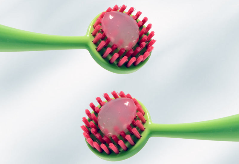over the irregular surface of the tongue penetrating the crevices and removing bacteria.The low profile and large head design allows for quick and efficient cleansing on the back portion of the tongue without gagging.